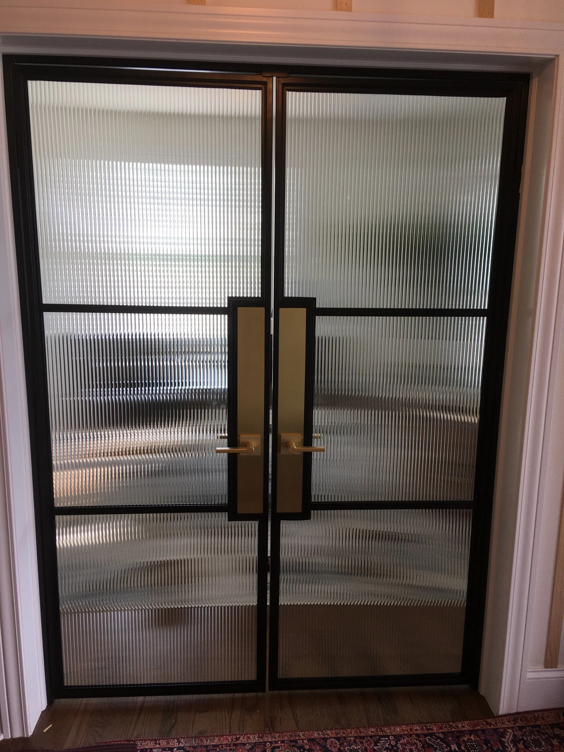 Doors Steel doors with fluted glass and brass accent finally installed. dawid czerniejewskiAugust 30, 2021doors, custom, fluted, glass, powder, coat, black, brsss, metal, welding, fabricator, chicago, deign, interiorComment